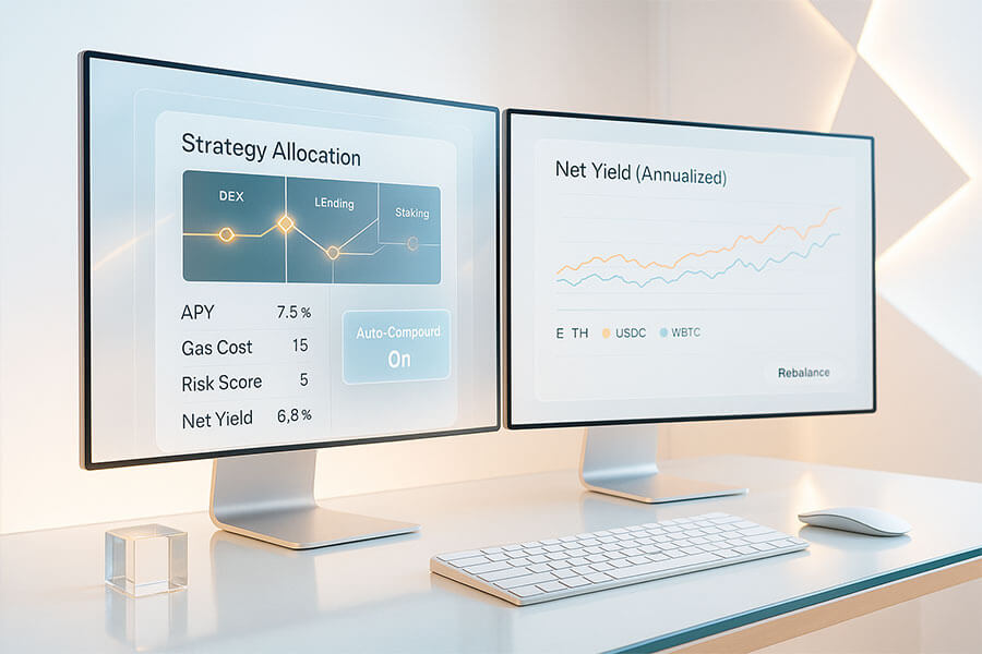 A yield aggregator is an automated protocol that pools user funds and deploys them across multiple DeFi platforms to maximize returns while managing risks and costs. Unlike depositing into a single protocol, aggregators continuously monitor dozens of opportunities, automatically move funds to optimal positions, handle reward harvesting and compounding, and provide diversification across multiple platforms. This automation and optimization generates higher net returns than manual approaches while requiring no ongoing effort from users beyond the initial deposit. - How do yield aggregators make money and what fees should I expect to pay?